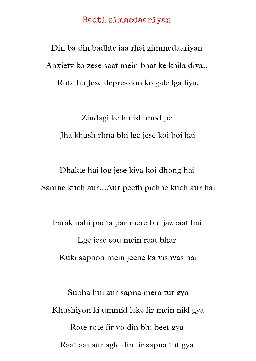 I’m gonna cover different kinds of emotions in different kinds of poetry(quotes) book.. So here is my first poetry book “beautifully broken”….. So basically all quotes is about one sided emotion of a person. who feels he/ she is losing everything….